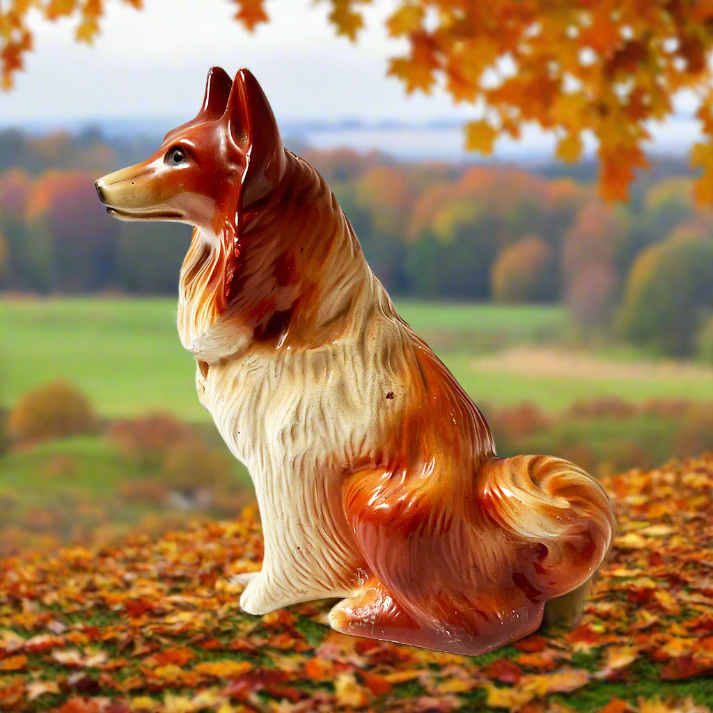 PATCH NYC founders Don and John love to visit vintage markets whenever they travel and we are pleased to offer a selection of their special finds. Here, a terrific piece of chalkware in the shape of a very expressive Collie dog. This obedient dog was designed as a coin bank so it has a slot in the head and an opening in the bottom. We love how well this dog is rendered!