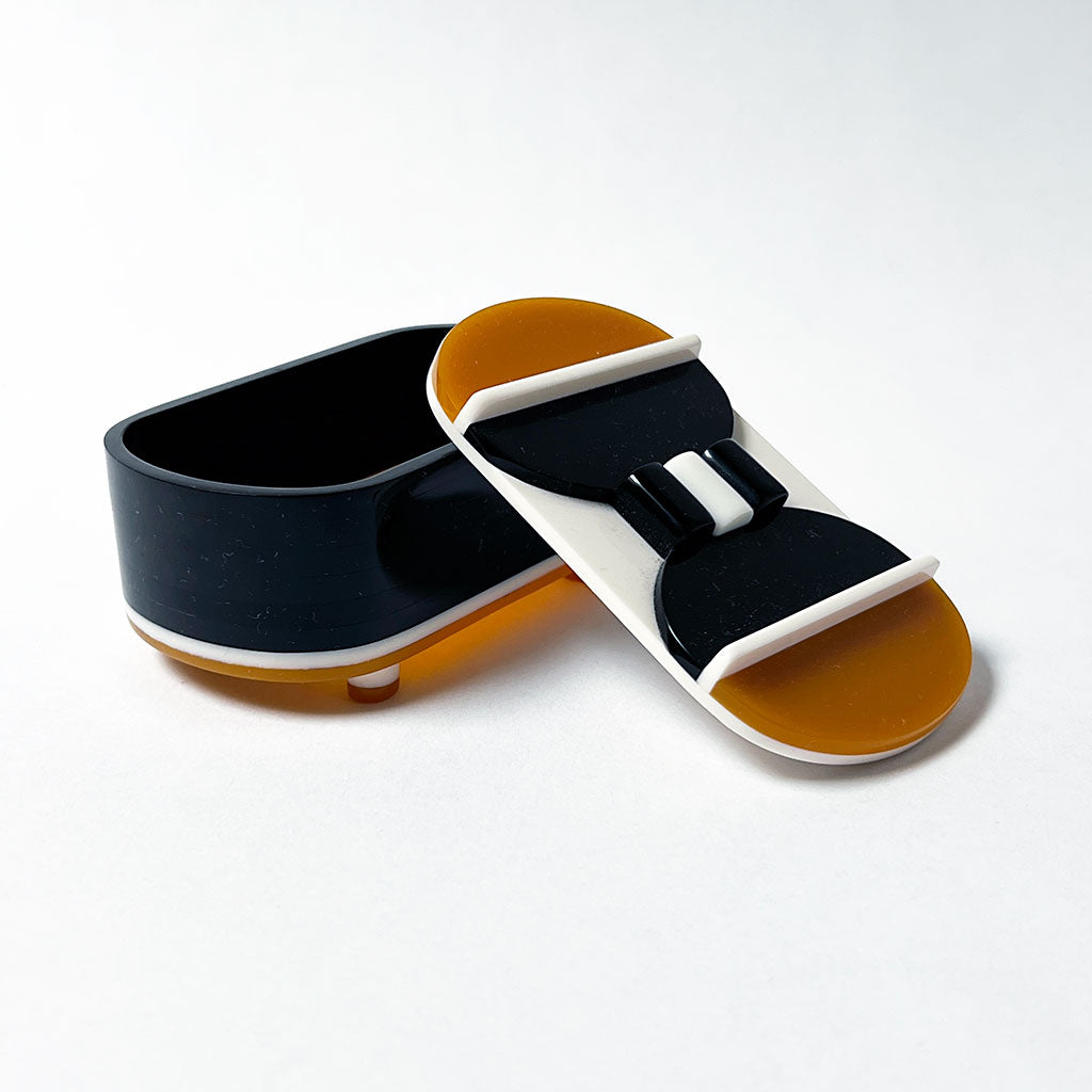 Polished Lucite Keepsake Box: Black, Cream, Amber Circles