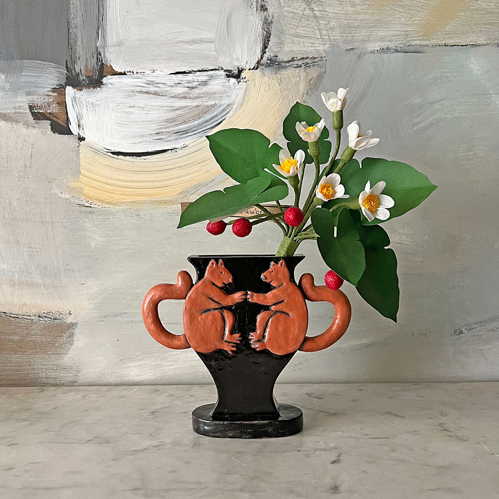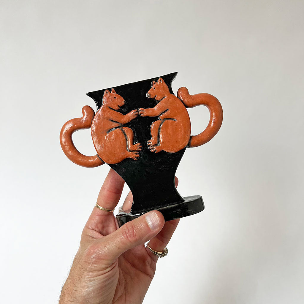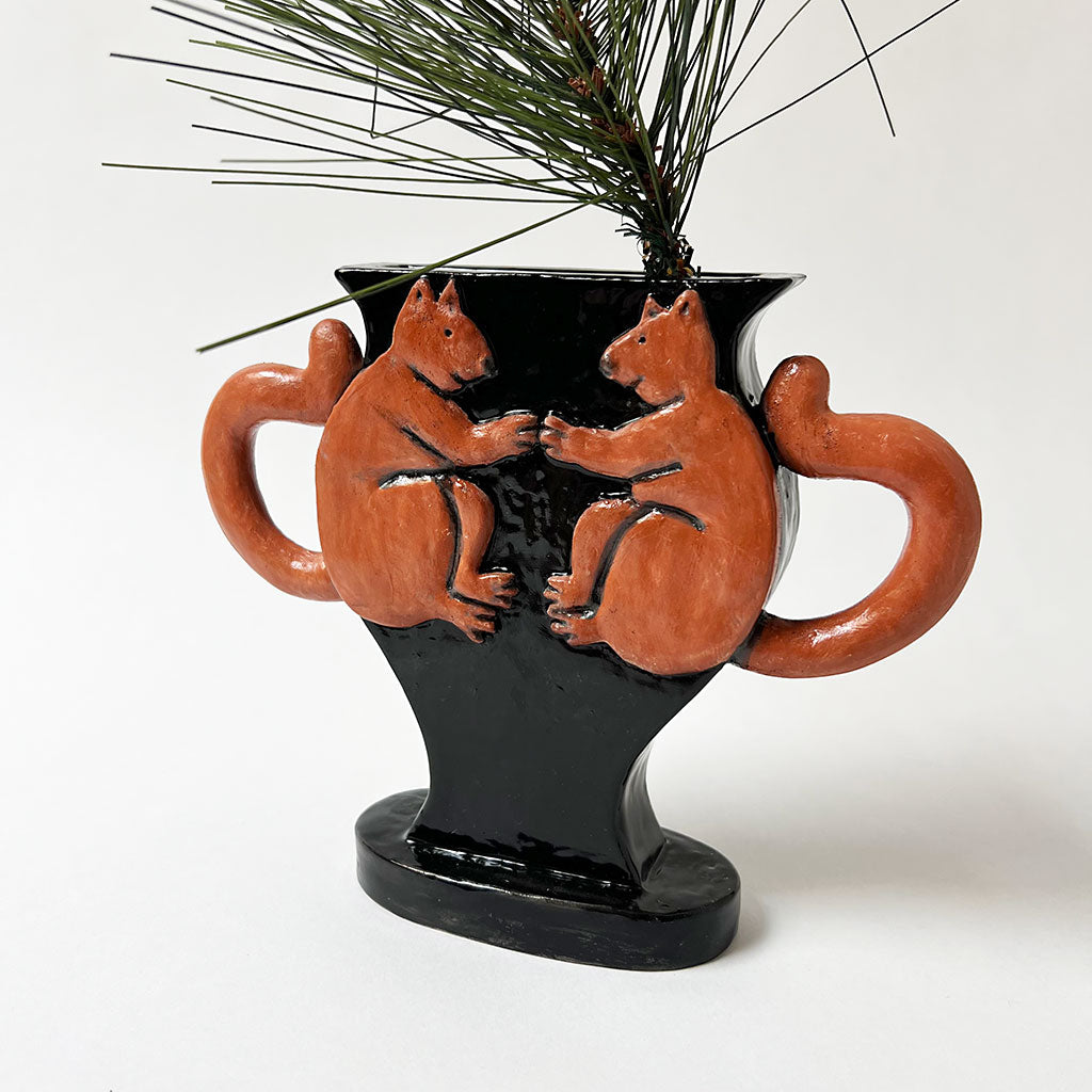 Ken Goldstrom is a fine artist who works with terracotta and white earthenware to create his hand build sculptures and vessels. He studied at the Rhode Island School of Design (RISD) and he works from an art studio in Beverly, Massachusetts.