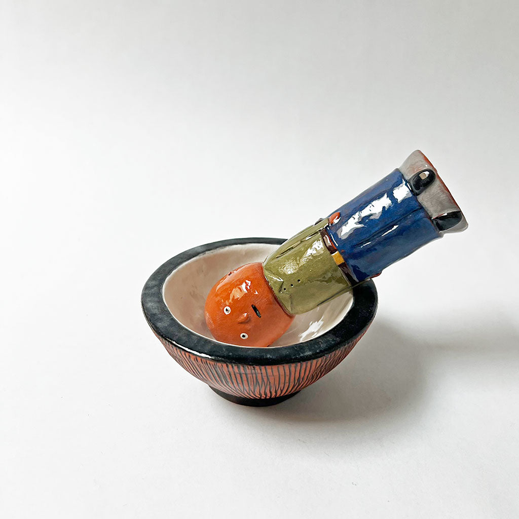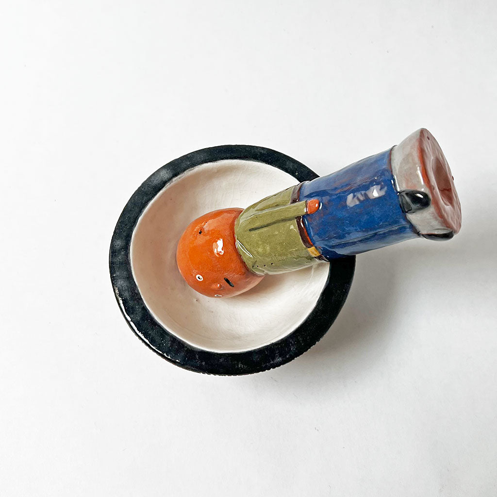 One of a kind, hand built ceramic sculpture by Ken Goldstrom. Mortal & Pestle is comprised of two separate pieces allowing for multiple display options as shown.
