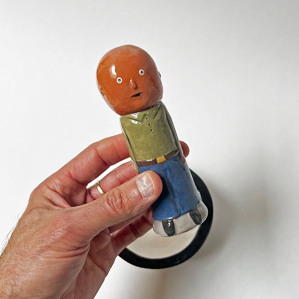 Ken Goldstrom is a fine artist who works with terracotta and white earthenware to create his hand build sculptures and vessels. He studied at the Rhode Island School of Design (RISD) and he works from an art studio in Beverly, Massachusetts.