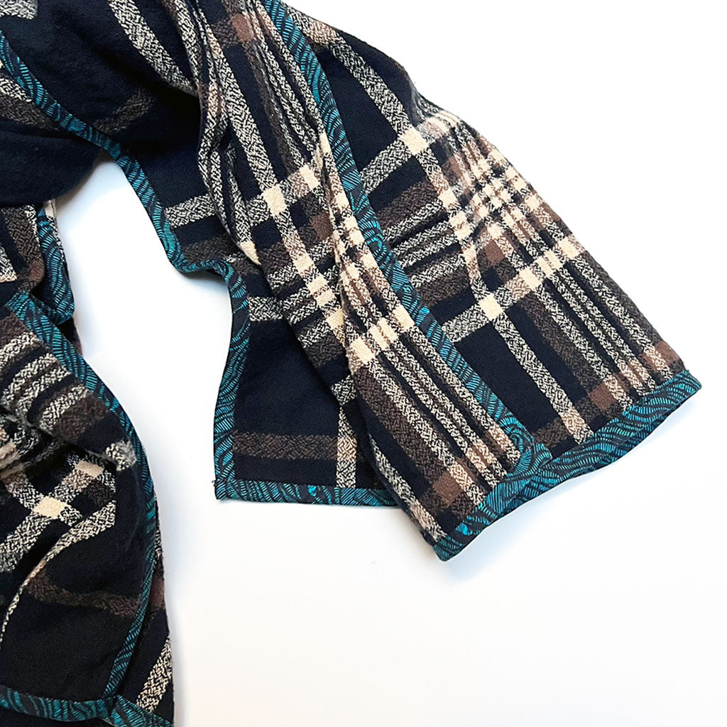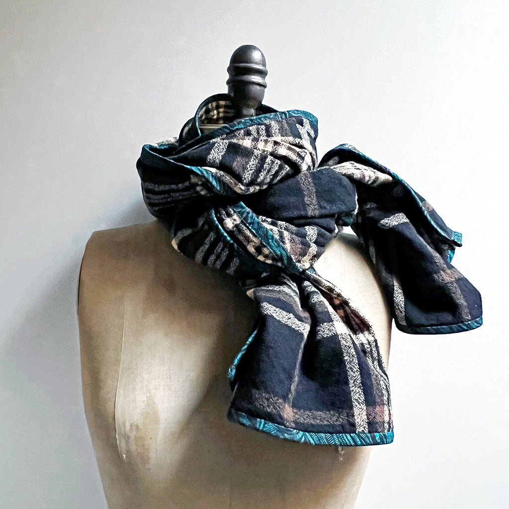This season, we sourced a collection of colorful patterned flannels and combined them with our signature contrast trim to add interest for a scarf collection that's super warm, cozy and stylish.