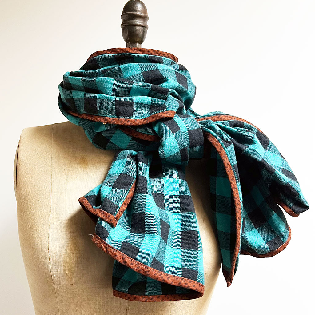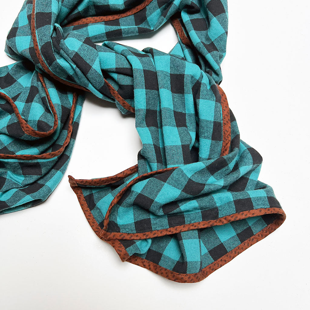 Teal & Black Check Flannel Scarf