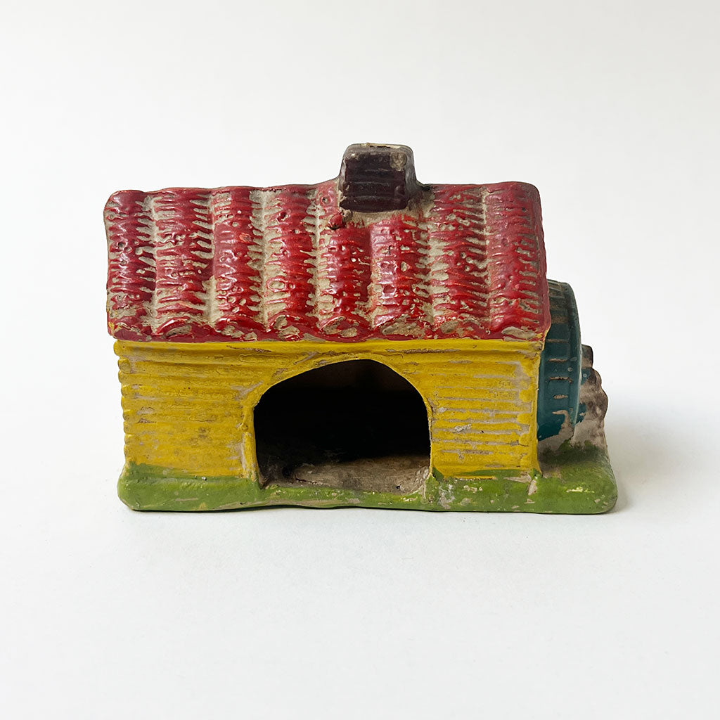 Vintage Yellow House with a Water Wheel Ceramic Incense Burner