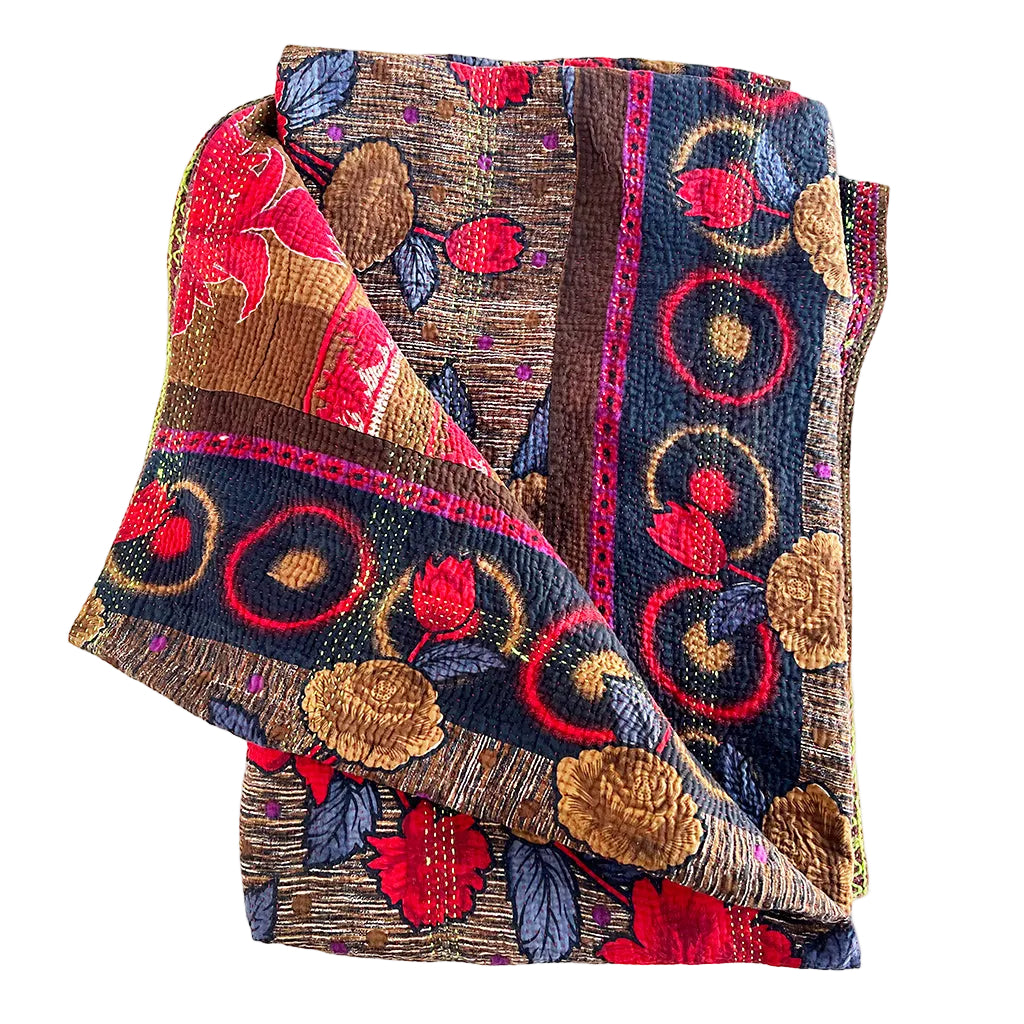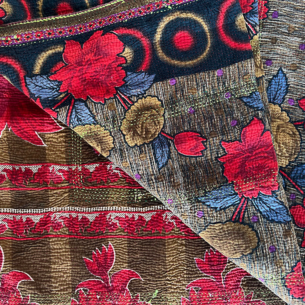 Vintage Kantha Reversible Cotton Throw Blanket (C1)