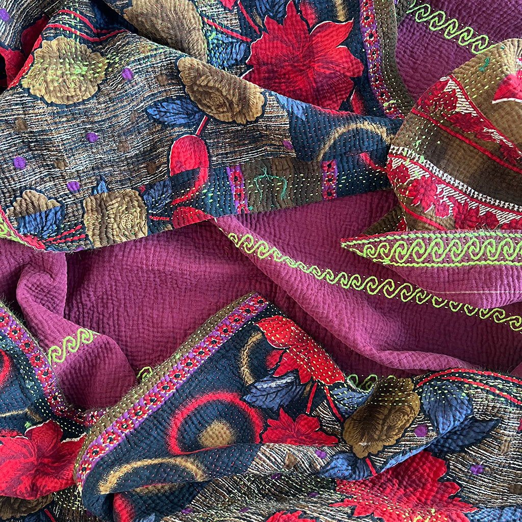 Experience the cozy comfort and unique style of vintage textiles with our collection of handpicked kantha throw blankets. Sourced and selected by PATCH NYC founders Don and John, these one of a kind textiles are perfect for adding a touch of softness, pattern and color to any room.