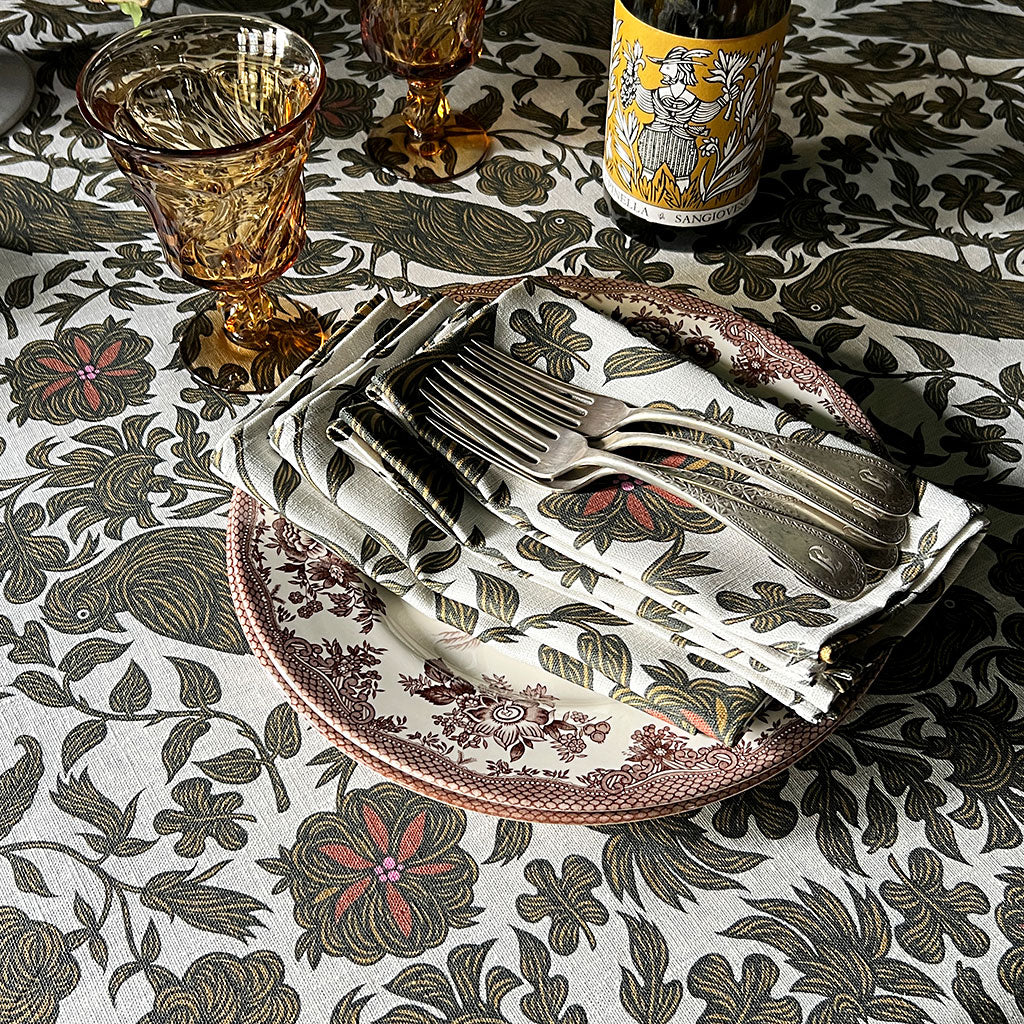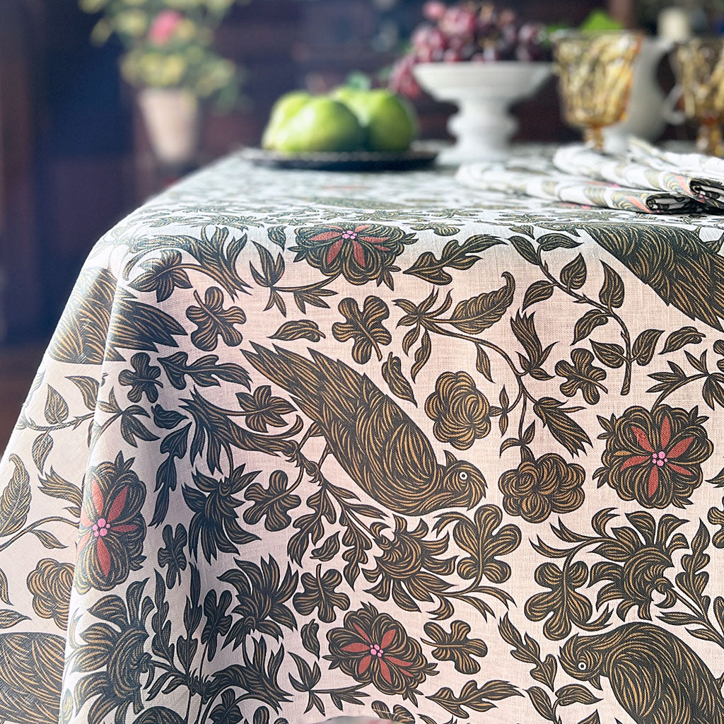 PATCH NYC Regal Bird Spice Linen Tablecloth